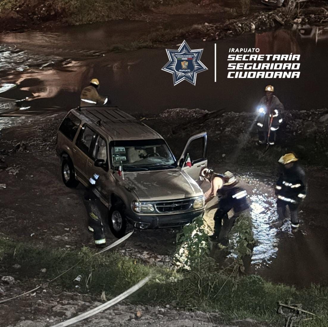 Coordinados a través del C4 de la SSCM de Irapuato, elementos de Protección Civil y Bomberos se trasladaron al lugar y confirmaron que el vehículo estaba siendo arrastrado por la corriente. Dentro se encontraban una mujer de 25 años y un menor de seis, quienes fueron rescatados de manera inmediata y trasladados a un lugar seguro.