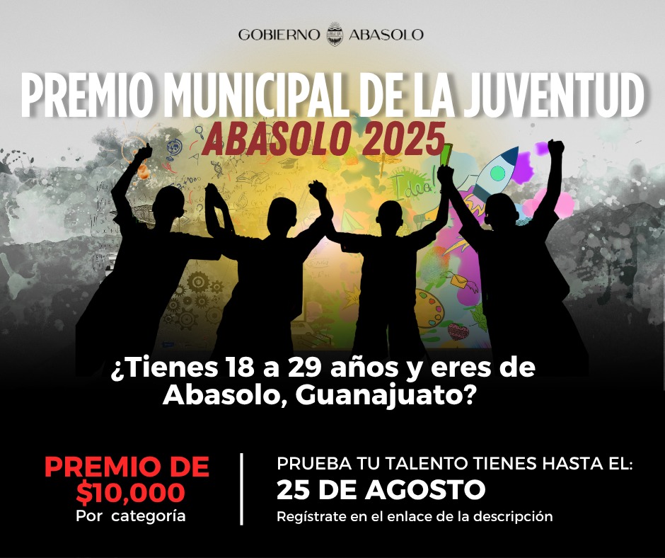 El Gobierno Municipal de Abasolo invita a las y los jóvenes a participar en el Premio Municipal de la Juventud Abasolo 2025, un reconocimiento al talento, esfuerzo y compromiso de la juventud abasolense.