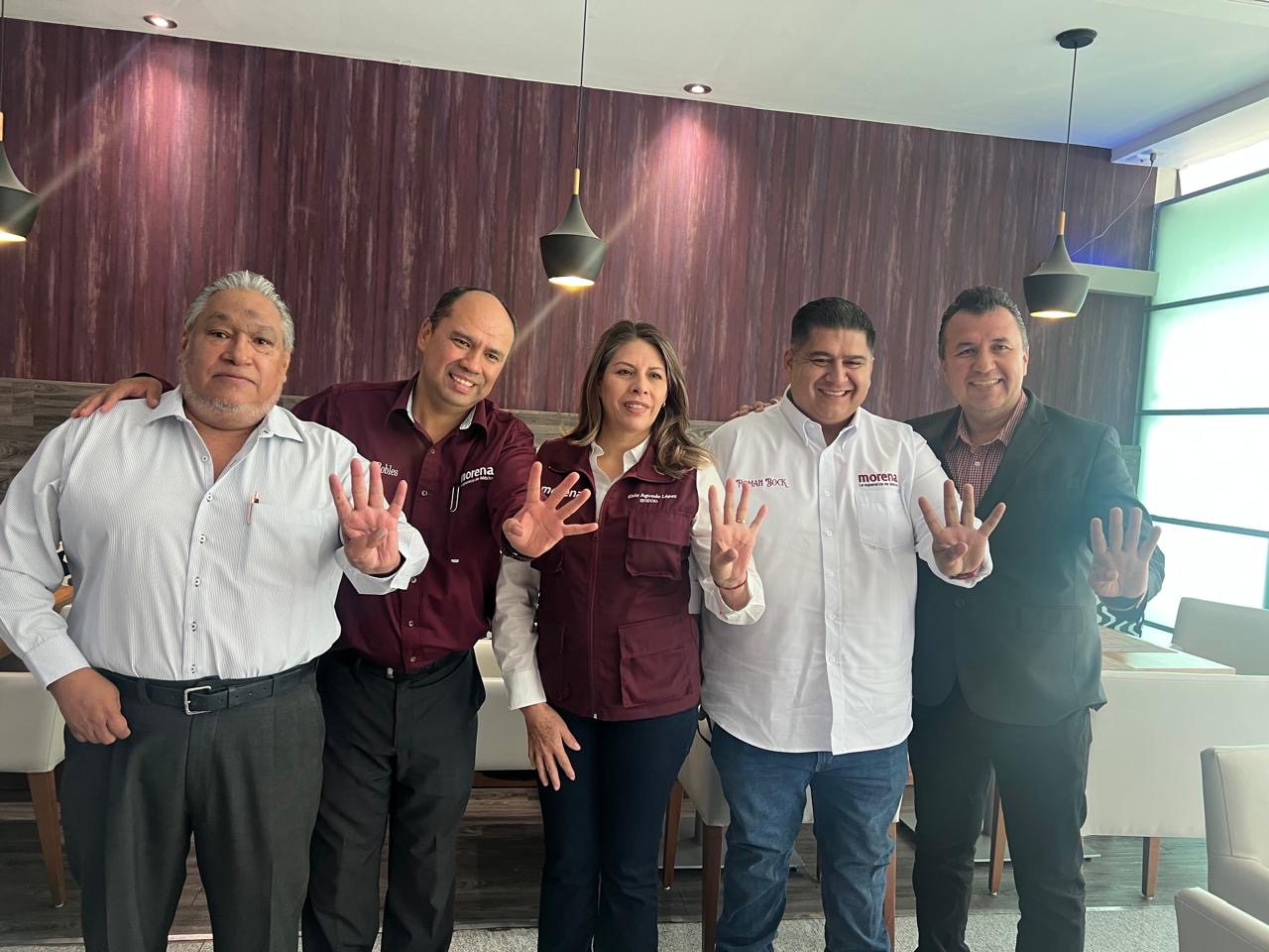 La regidora Elvia Aguado López, el regidor Ignacio Morales y Aarón Cabañas Marcial, presidente nacional de la Unión de Campesinos y Emigrantes Mexicanos (UCEM), sostuvieron un encuentro con Alejandro Robles, secretario de Mexicanos en el Exterior del Comité Nacional de Morena, y con Román Bock, delegado de circunscripción.