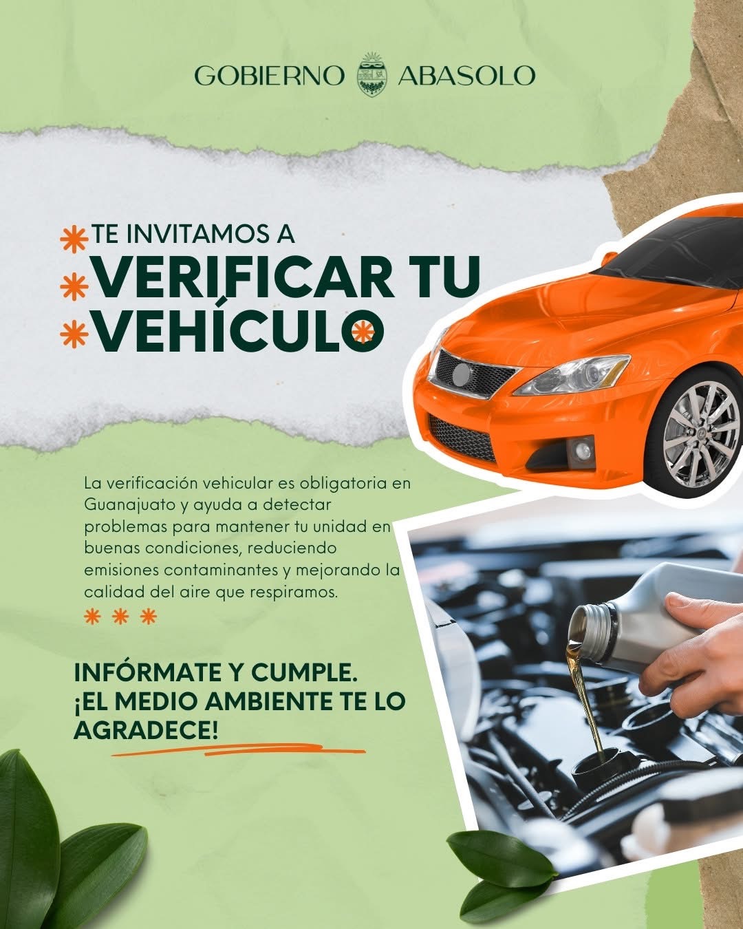 La Dirección de Ecología del municipio de Abasolo llamó a la ciudadanía a participar en el programa de verificación vehicular, con el objetivo de reducir emisiones contaminantes y mejorar la calidad del aire en la localidad.