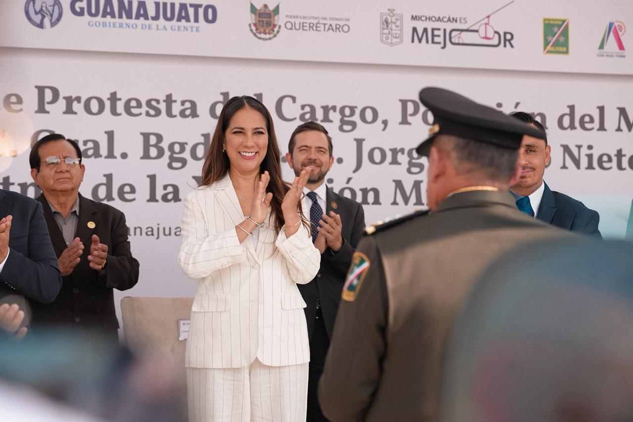 La Gobernadora de la Gente, Libia Dennise García Muñoz Ledo, asistió a la ceremonia de Toma de Protesta al Cargo, Posesión del Mando y Protesta de Bandera por parte del General de División Diplomado de Estado Mayor (DEM), Jorge Pedro Nieto Sánchez, ComandanteInterino de la XII Región Militar, con sede en Irapuato.