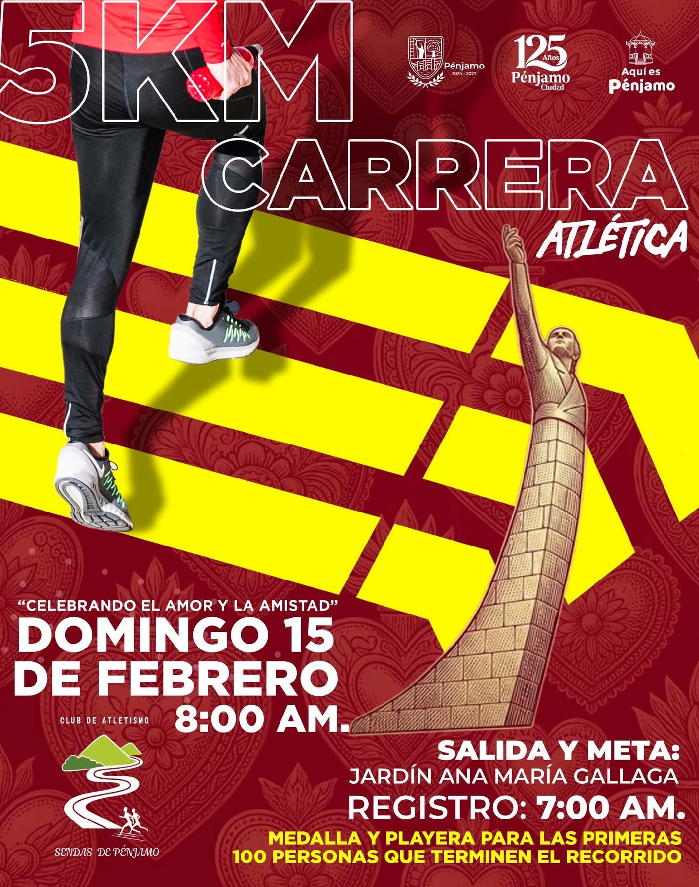 El Gobierno de Pénjamo hace un llamado a la ciudadanía para participar en la 5K Carrera Atlética, que se realizará este domingo 15 de febrero a las 8:00 a.m., con salida y meta en el Jardín Ana María Gallaga.