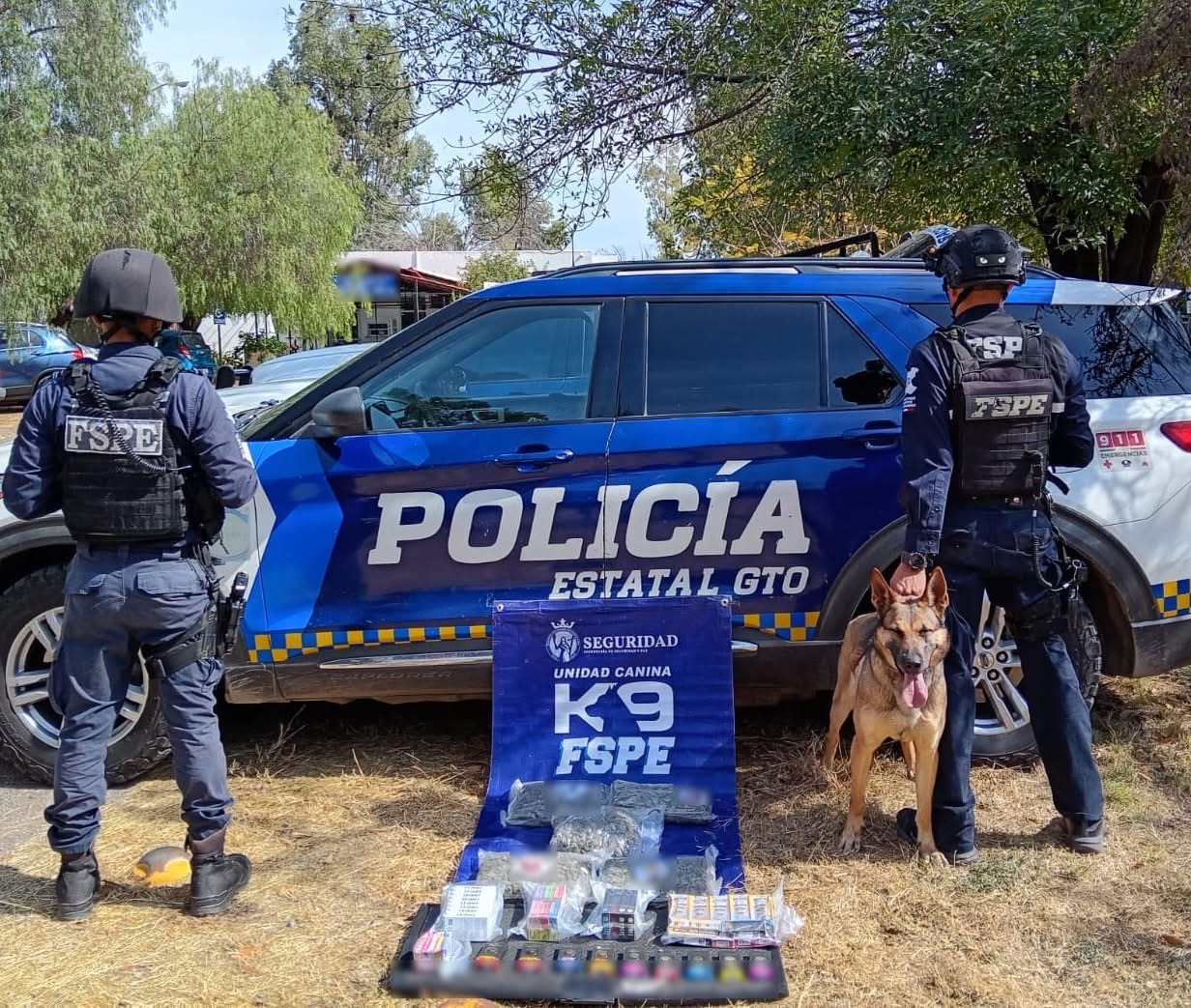 La Unidad Canina K9 de las Fuerzas de Seguridad Pública del Estado (FSPE) realizó el aseguramiento de 49 vapeadores con presunta marihuana durante un operativo de inspección en una empresa de paquetería.