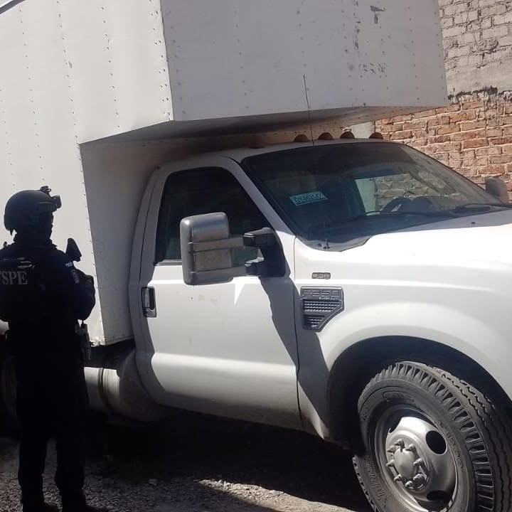 En otro punto del municipio, se localizó una camioneta de 3.5 toneladas con caja seca blanca, que emanaba un fuerte olor a hidrocarburo. Al inspeccionar la unidad, se encontraron en su interior cuatro contenedores con capacidad de mil litros cada uno, llenos de combustible.