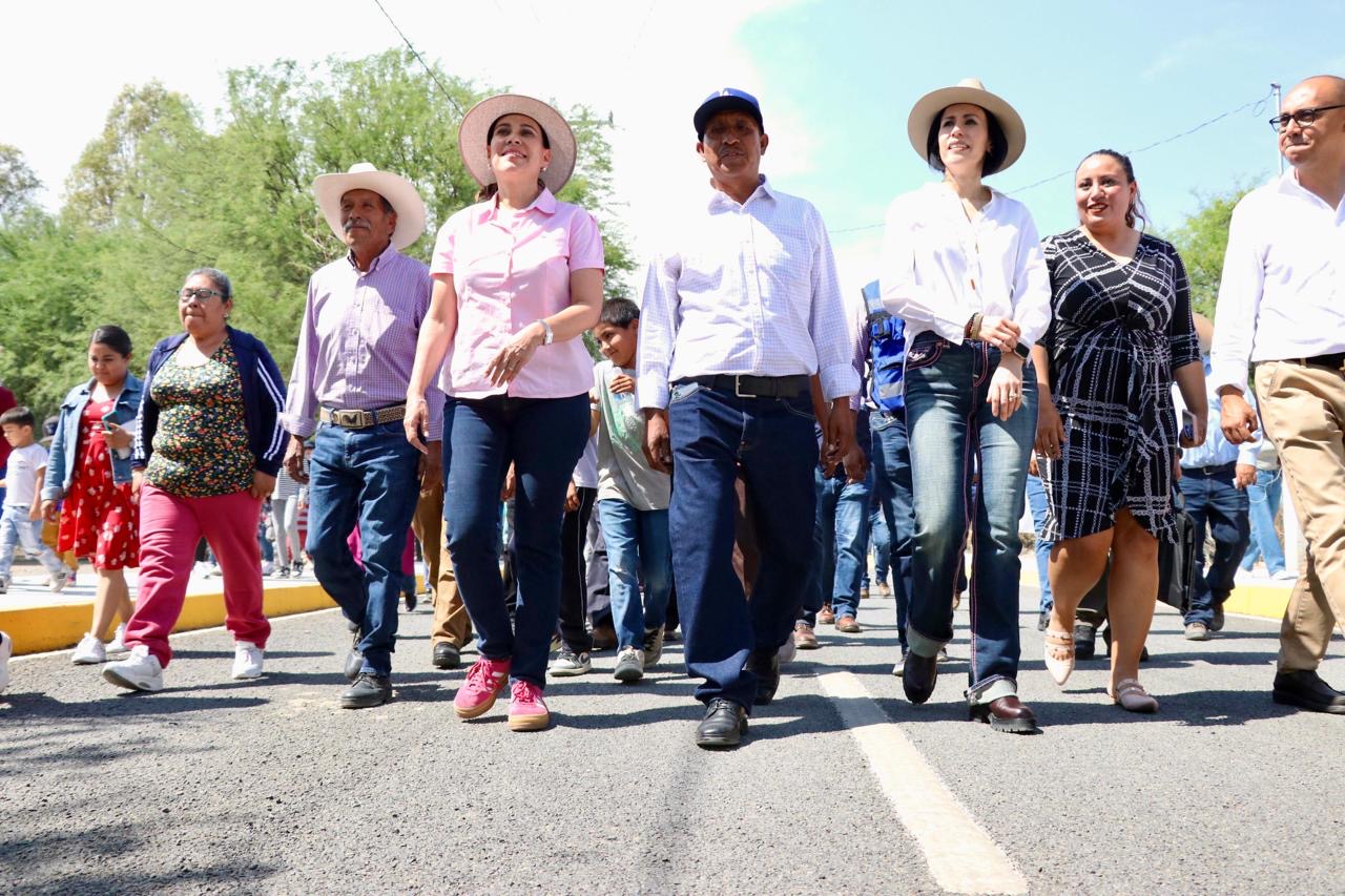 Posteriormente, la presidenta municipal supervisó la pavimentación con asfalto de la calle Deportiva (Mezquite), en la comunidad de Tejamanil, obra que representa una inversión superior a los 8 millones de pesos, con participación del Gobierno del Estado, encabezado por la gobernadora Libia Dennise García Muñoz Ledo.